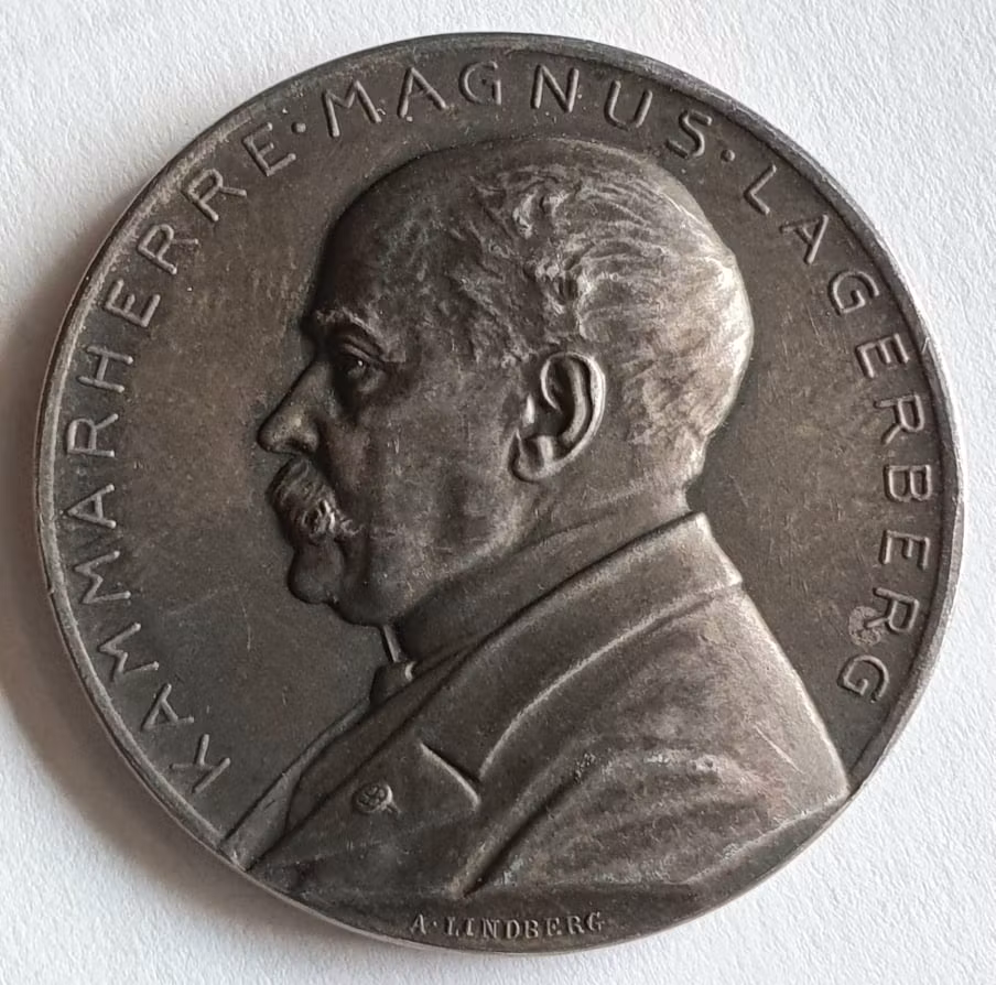 Magnus Lagerberg, 1844-1920, museiman, numismatiker, silvermedalj 1914, Referens: Grav. A. Lindberg, 31 mm, kv.1+.