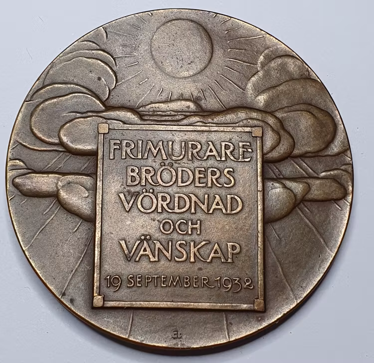 Statsminister, industriman, sjöofficer, partiledare. Frimurare 1932, Grav. Erik Lindberg, 56 mm, brons. 1+/01.